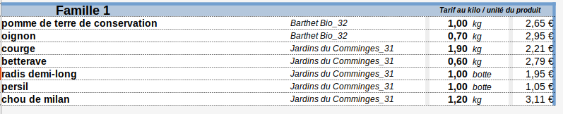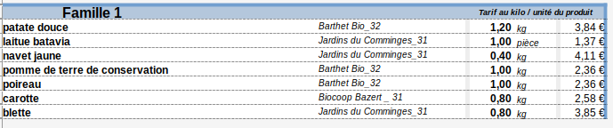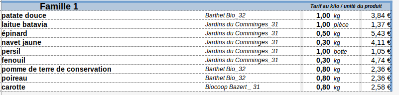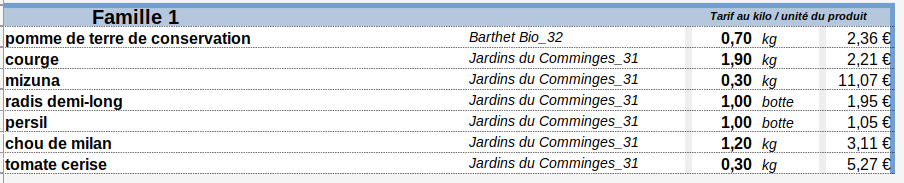 - Panier Famille (5 à 7 légumes différents) : 17 € ==> 18.30€ au 1er Juillet